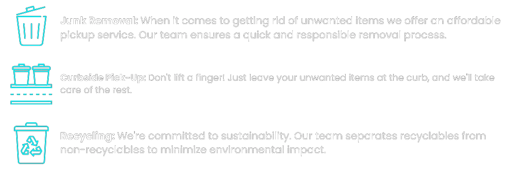 Experience hassle-free junk removal and curbside pick-up services! We specialize in providing efficient and eco-friendly solutions for your waste management needs.